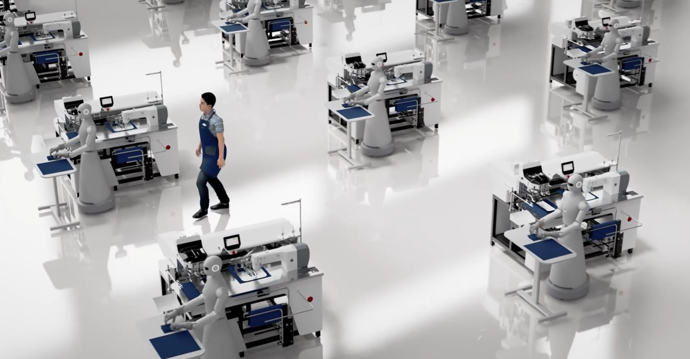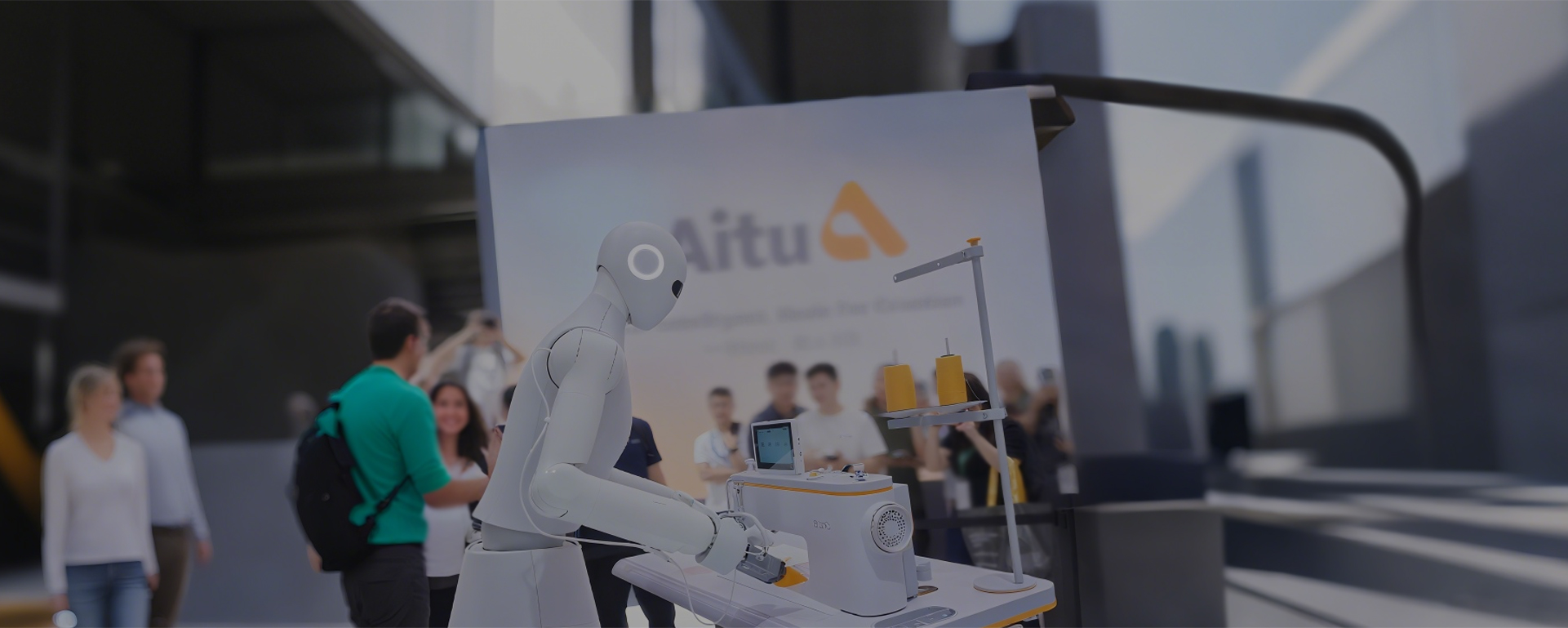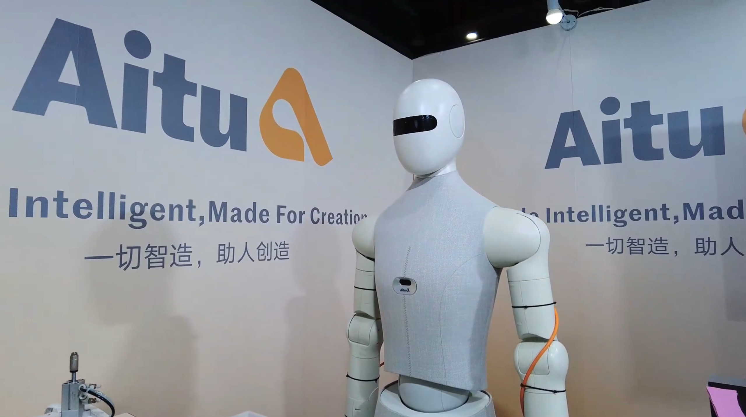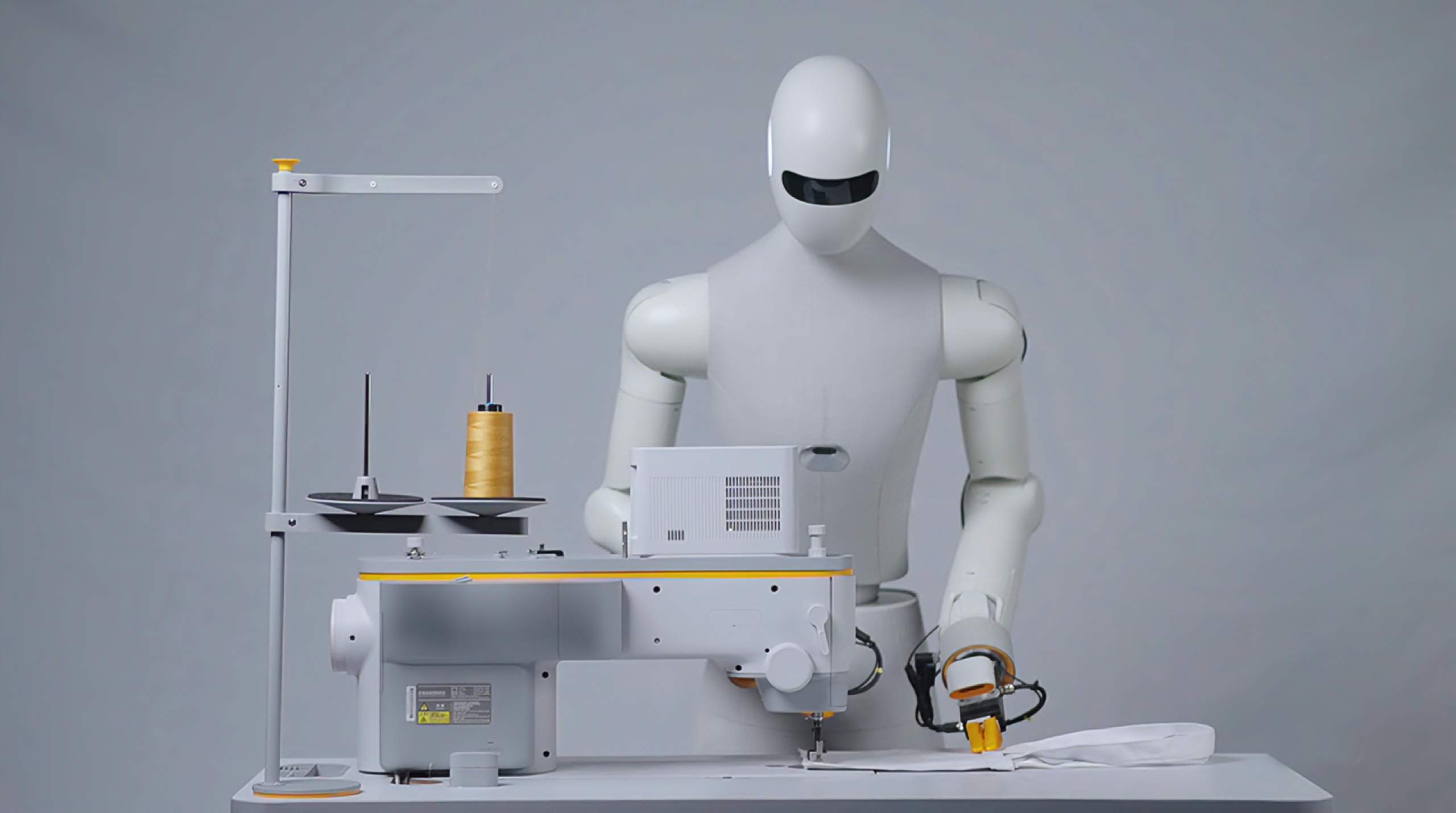 The AITU humanoid robot is designed for sewing. Thanks to its high-precision moving base and sewing-specific AI models, it can separate, align, and position flexible materials in various production scenarios.